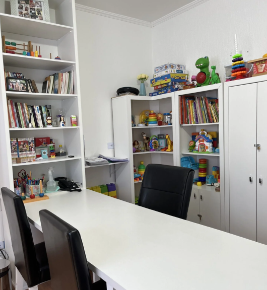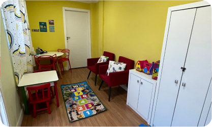 Começamos com três salas e um espaço para cursos. Hoje, temos uma sede própria com nove salas de atendimento, brinquedoteca e parcerias com faculdades, recebendo mais de 30 pessoas por turma.